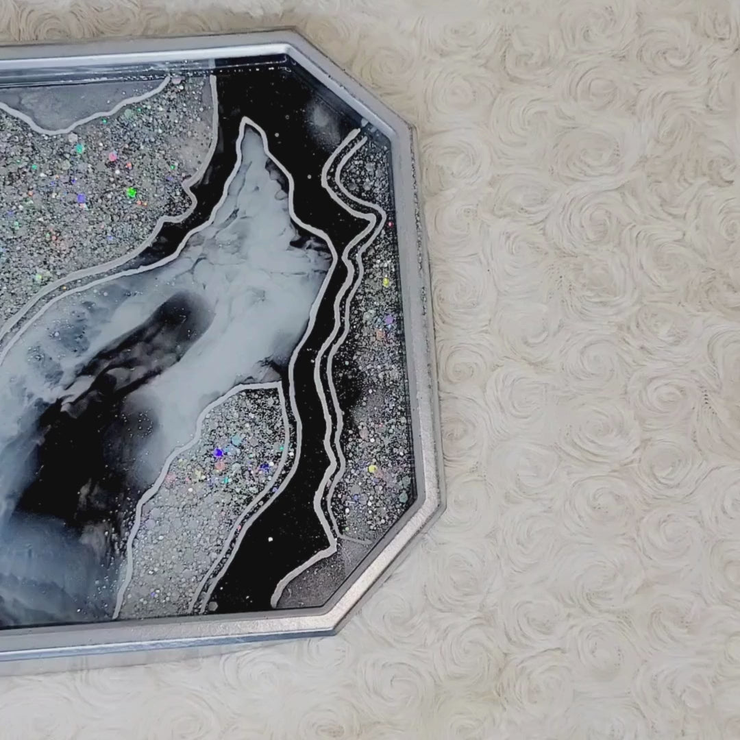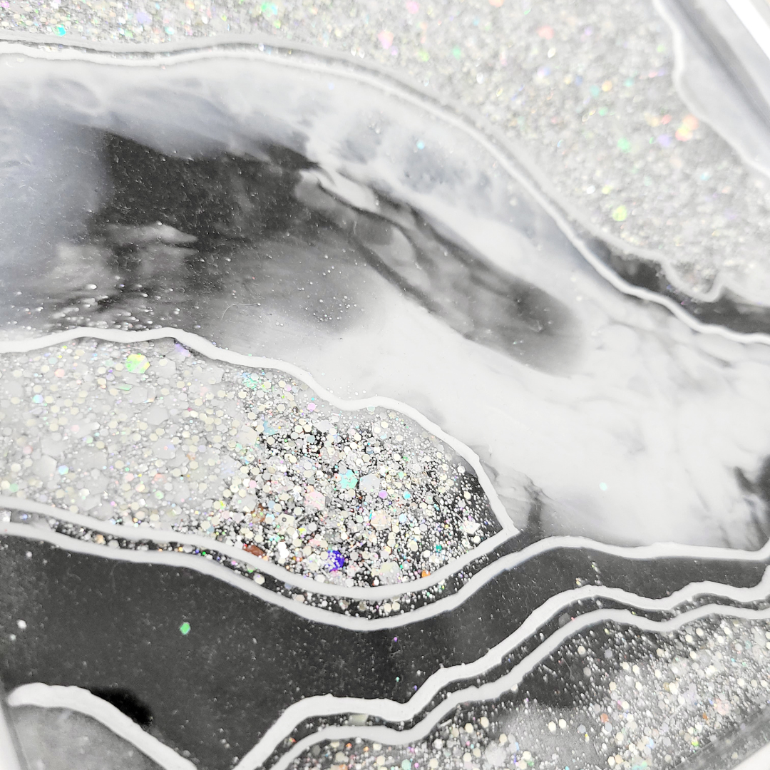 Black and Silver Agate Geode Inspired Glitter Resin Tray