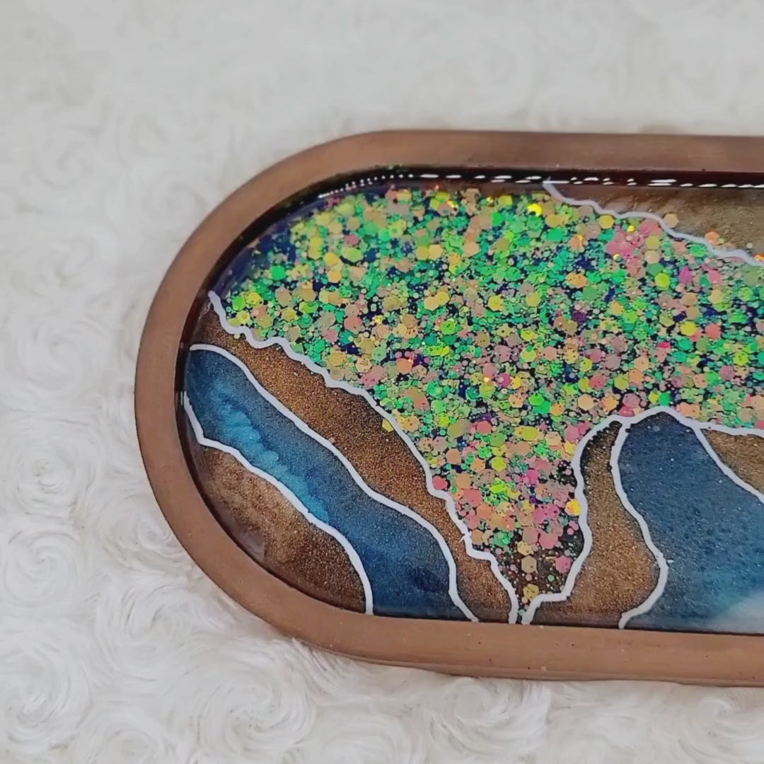 Blue and Copper Agate Geode Inspired Trinket Tray