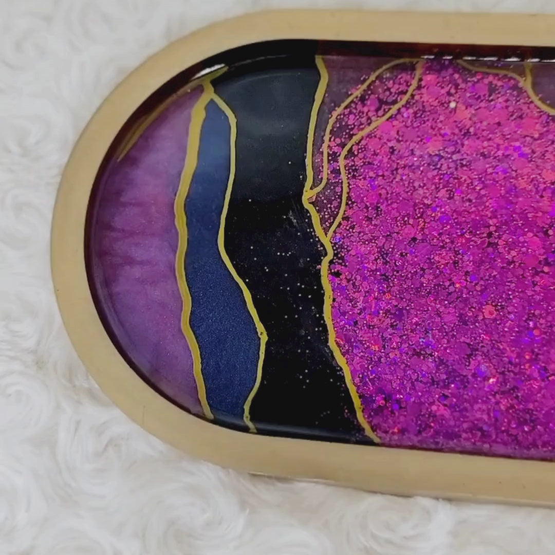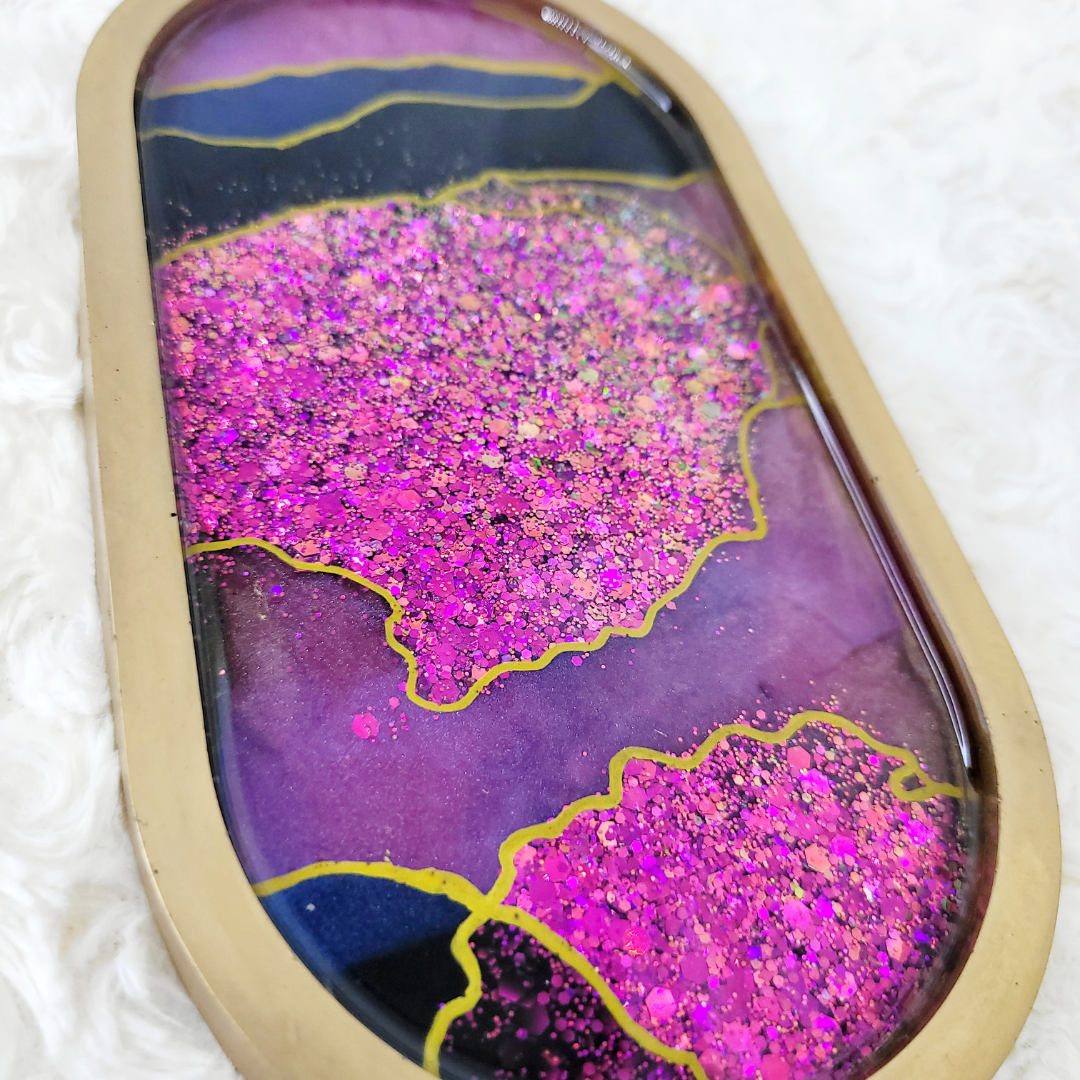 Pink, Black, and Gold Agate Geode Inspired Trinket Tray