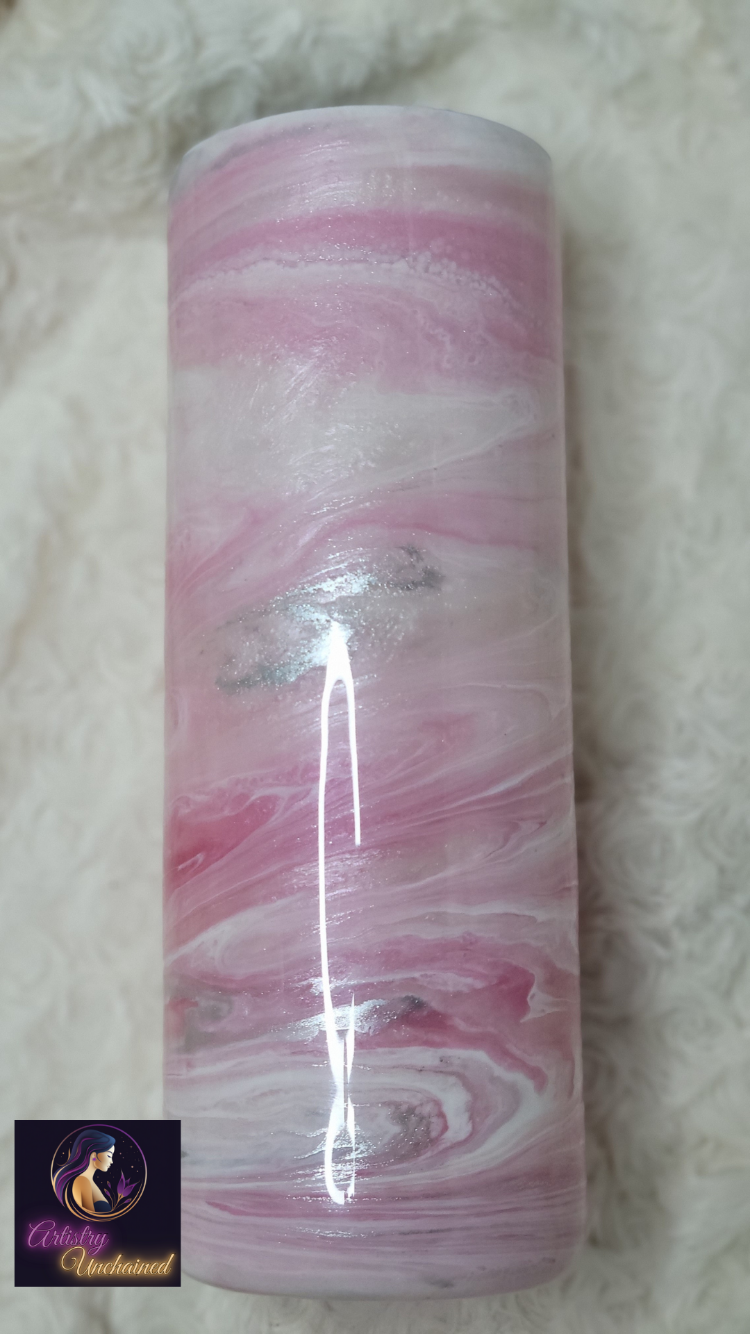 This dazzling tumbler, channeling the vibes of rose quartz, is an absolute showstopper! With its dreamy pink and white hues mirroring the beauty of the rose quartz crystal, it shines bright among the top 5 tumbler creations from “trust the process”.