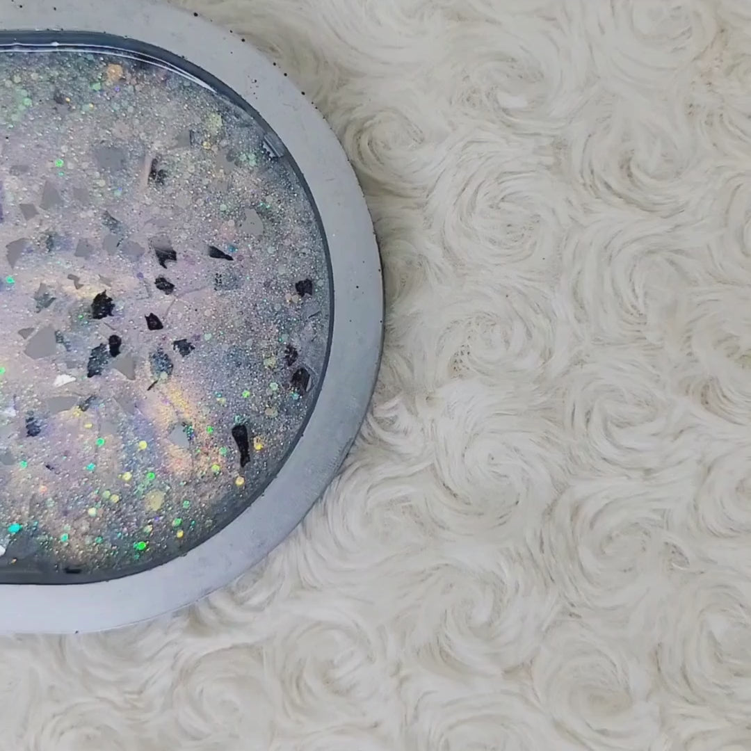 Silver Glitter and Glass Trinket Tray